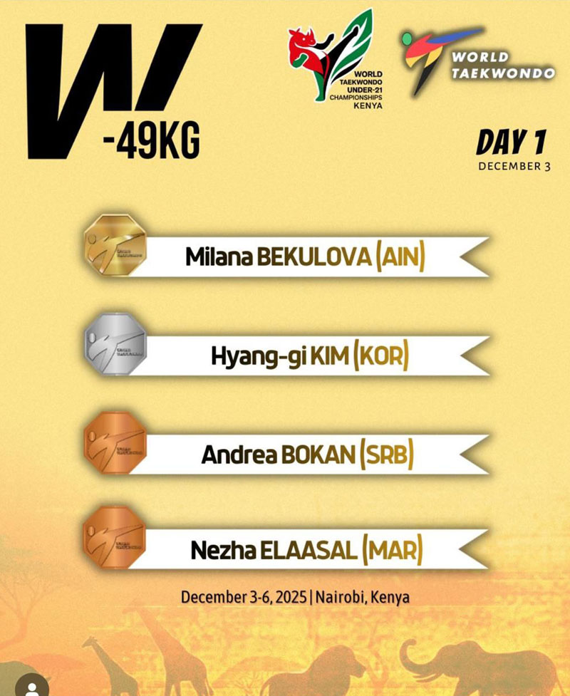 В г. Найроби (Кения) с 02 по 07 декабря 2025 года проходит первенство мира среди юниоров и юниорок до 21 года. Спортсменка ГБПОУ МО "УОР № 1" Бекулова Милана в составе сборной команды России завоевала золотую медаль турнира в весовой категории до 49кг!