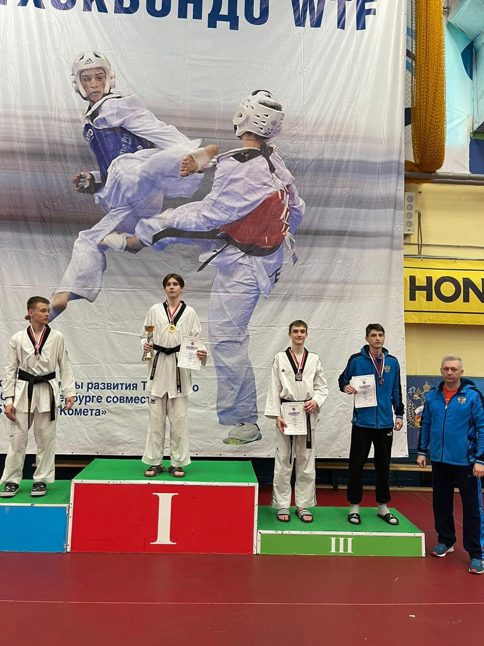 Подмосковные спортсмены ГБПОУ МО «УОР № 1» отделения «Тхэквондо» на проходящих с 22 по 24 апреля 2022 года в г. Санкт-Петербург Всероссийских спортивных соревнованиях по тхэквондо (ВТФ) «Кубок на призы Президента Санкт-Петербургской спортивной федерации ТХЭКВОНДО Демида Момота” показали высокие результаты: